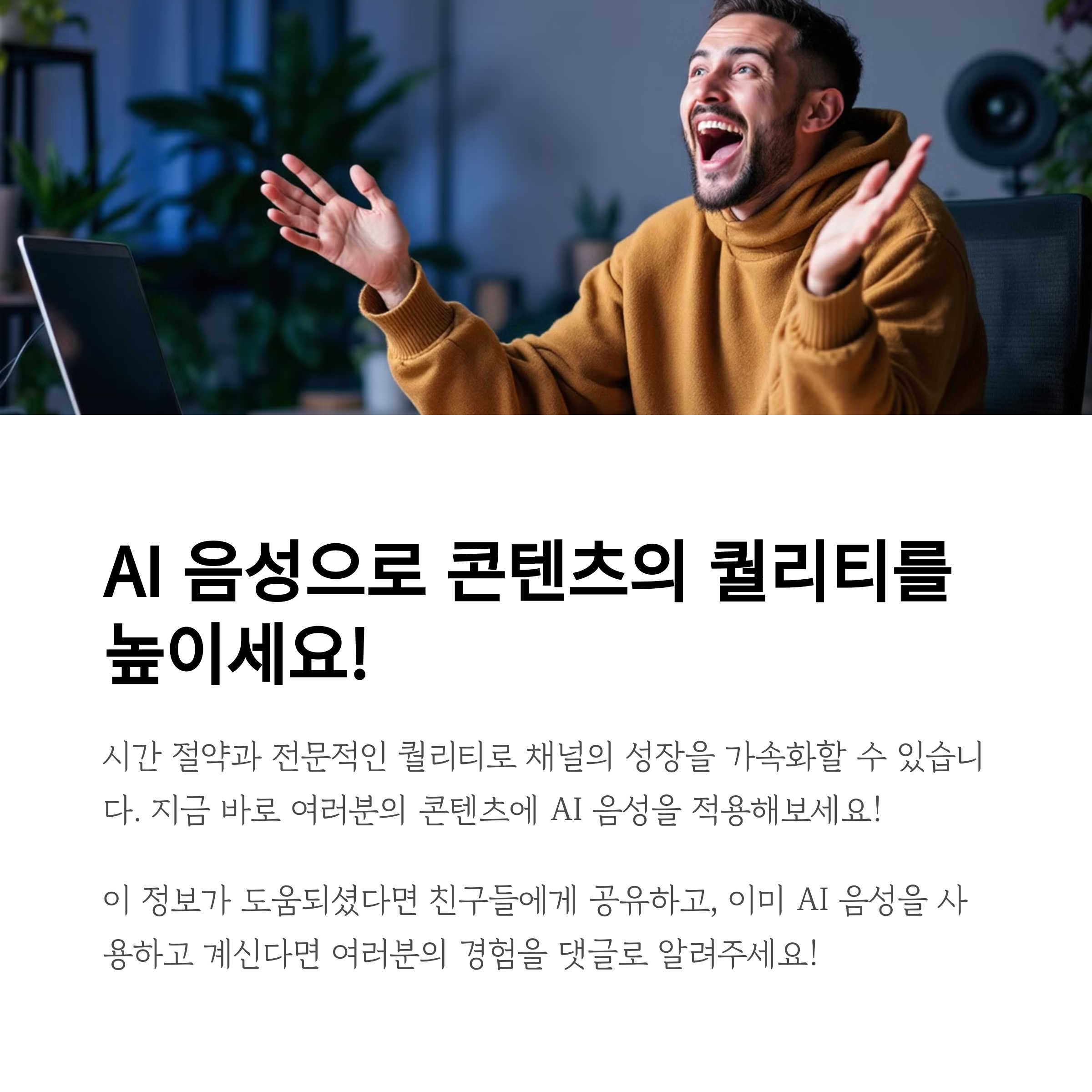 💡 콘텐츠 스타일에 따라 목소리도 달라져요! 여러분은 어떤 톤을 원하시나요? 댓글로 알려주세요 😊