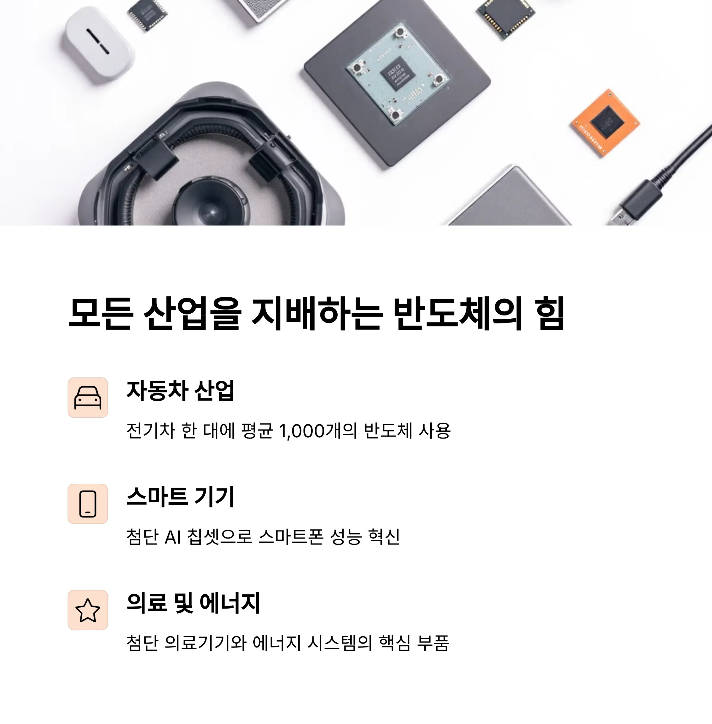 - ⚕️ 헬스케어 산업: 스마트 의료기기, 웨어러블, 진단 장비까지 칩 기반 전환