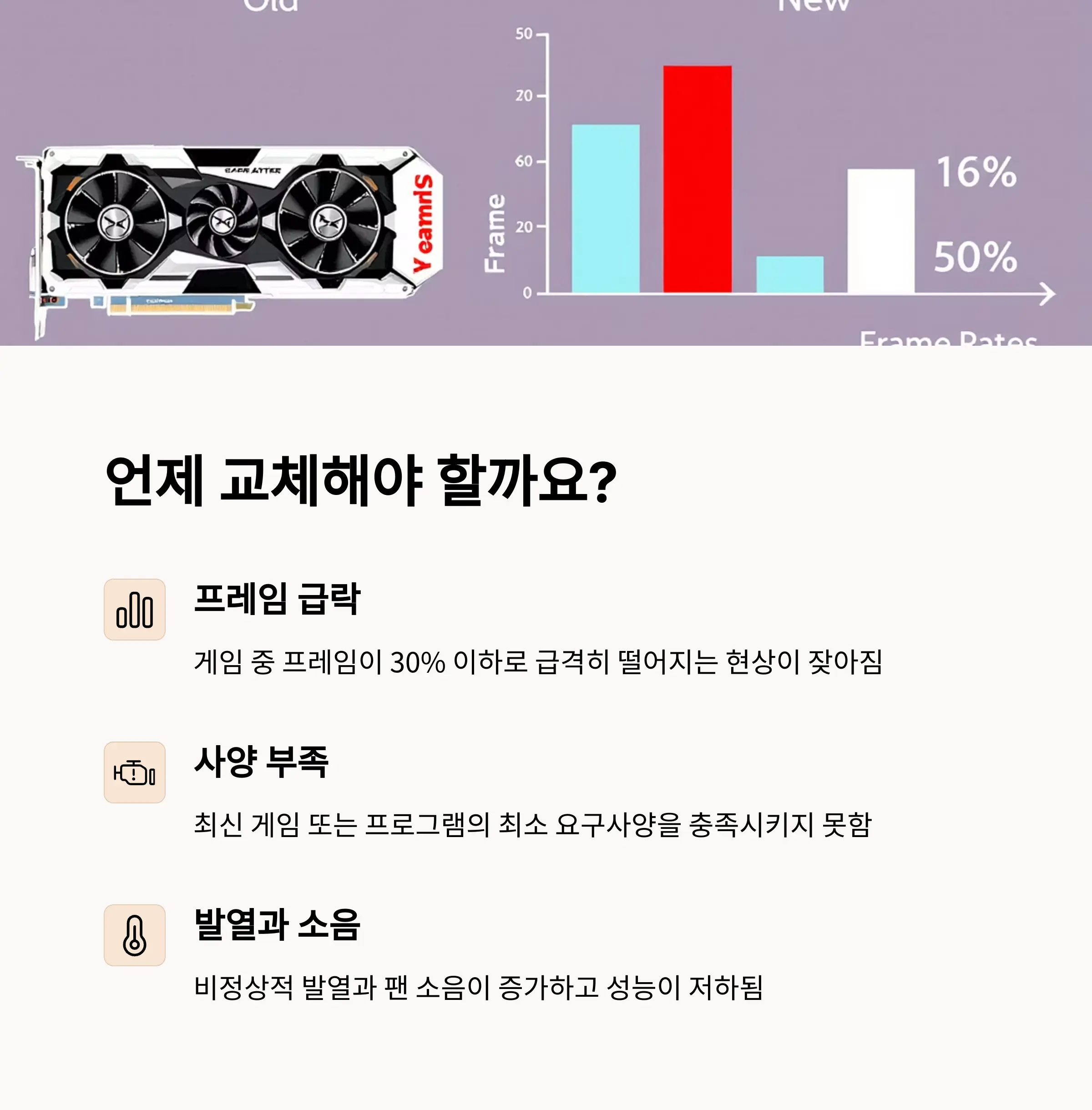 무작정 교체할 필요는 없지만, 확실한 기준은 필요합니다. ‘게임이 끊긴다’, ‘작업이 느려진다’, ‘전력 소모가 크다’ 그럴 땐 고민 말고 한 세대 이상 업그레이드 해보세요. 바꾸고 나면 느껴요. ‘왜 진작 안 바꿨을까’ 싶은 그 기분. 그러니 숫자가 아니라, 당신의 사용감이 기준이 되어야 합니다.