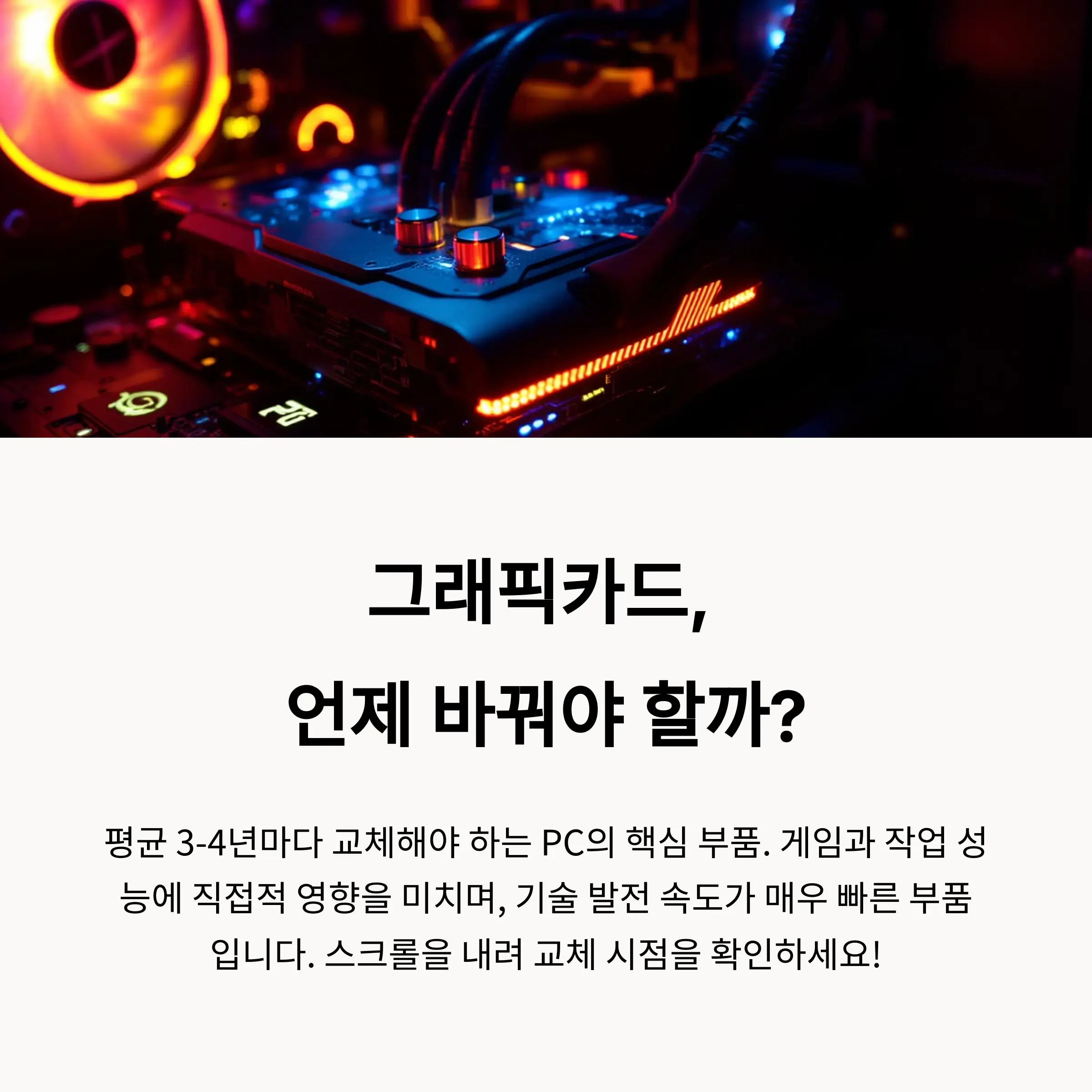 게임 중에 프레임이 툭툭 끊기고, 영상 편집할 때 미리보기조차 렉이 걸릴 때쯤… 그제야 ‘그래픽카드를 바꿔야 하나?’ 고민하곤 하죠. 하지만 정작 교체 시점을 정확히 아는 사람은 드뭅니다. 2년? 5년? 누군가는 10년 넘게 쓰기도 해요. 대체 그래픽카드 교체 주기, 몇 년이 가장 이상적일까요? 저도 오랫동안 그래픽카드를 바꾸지 않다가, 결국 게임 하나 때문에 전면 업그레이드를 결심했던 기억이 납니다.