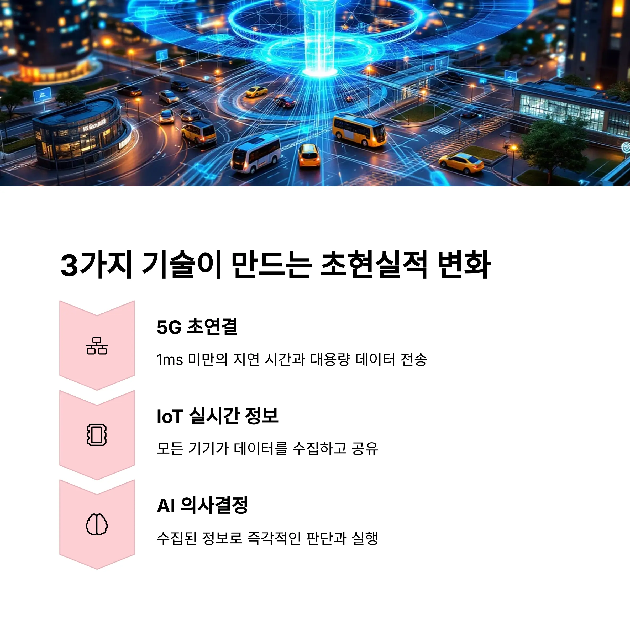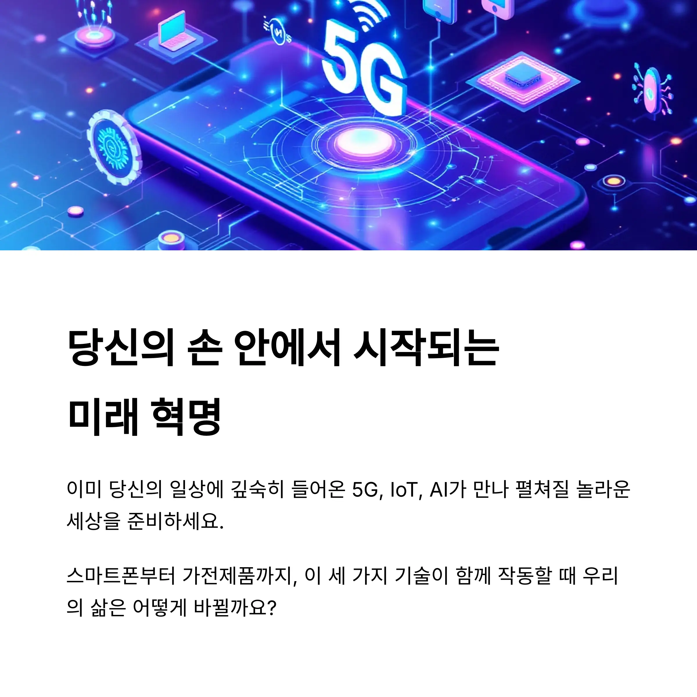 우리는 이미 5G 스마트폰을 쓰고, 집에는 IoT 가전이 있고, 검색창 뒤엔 AI가 있습니다. 그런데 이 셋이 진짜 '함께' 움직이기 시작하면 무슨 일이 일어날까요? 하나하나도 놀라운 기술이지만, 이 조합이 만드는 미래는 차원이 다릅니다. 단지 속도가 빠르거나, 기기가 연결되거나, AI가 똑똑해지는 게 아니에요. 이 셋이 실시간으로 정보를 주고받으며 자동화된 반응을 만들고, 그 결과는 사람의 생활 방식 자체를 바꿉니다. 상상해보세요. 누군가 생각하기도 전에 이미 실행되는 세상. 그게 바로, 지금 우리 코앞에 와 있습니다.